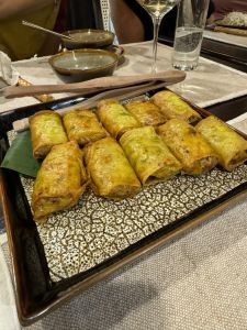 Dan staat er een westerse 3 gangen menu voor ons klaar. We eten ons wat af. Ook weer heerlijk, daarna gaan we het zonnedek op en genieten met een wijntje van deze reis en de vele gesprekken met diverse mensen uit verschillende landen. Goed om te horen hoe zij werken en wat hun specialiteit is.