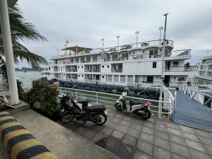 Na een korte rit rijden we door Halong city. Hier zie je echt duidelijk de schade van de Tyfoon. Bomen omgewaaid, daken en dakpannen afgewaaid. De Bay zelf kan door de tyfoon wat vervuild zijn maar ook het internet is hierdoor erg slecht of gewoon niet te bereiken. Voor ons als reisagenten niet altijd handig want je moet altijd wel wat doen en wilt bereikbaar zijn voor je klanten mocht er iets zijn. Gelukkig heb ik wel altijd wel lieve collega’s die mij vervangen in een noodgeval.