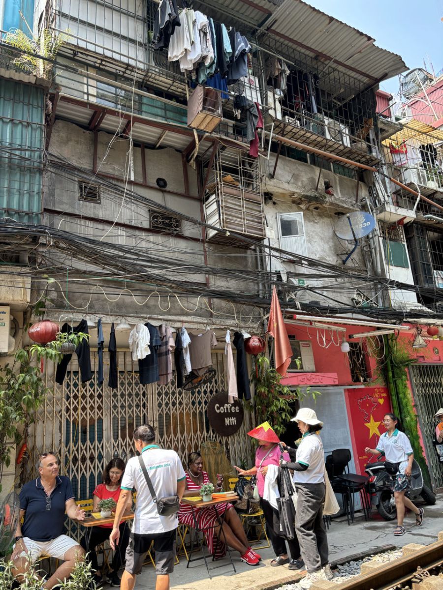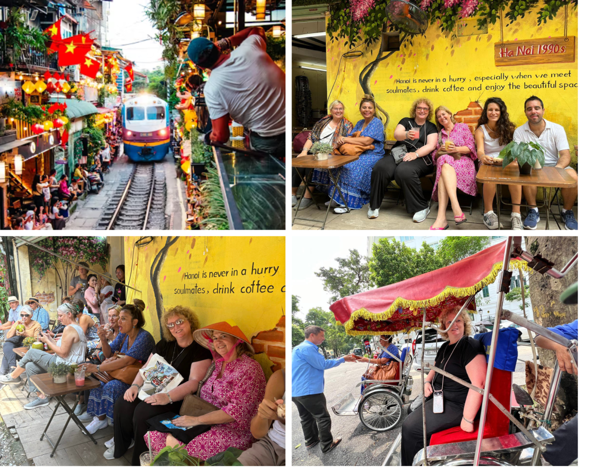 We bezichtigen een het Sofitle Legend Metropole hotel, een prachtig hotel met een eigentijds karakter. Ze hebben er zelfs een bunker. Na de lunch mogen we op de fiets stappen, we worden gereden en je kijkt je ogen uit door allerlei smalle straatjes en je krijgt zo een indruk van het leven in Hanoi. We gaan naar de beroemde trein die vlak langs de kleine cafeetjes rijdt. Je moet goed uitkijken dat je niet te dicht op de trein zit.