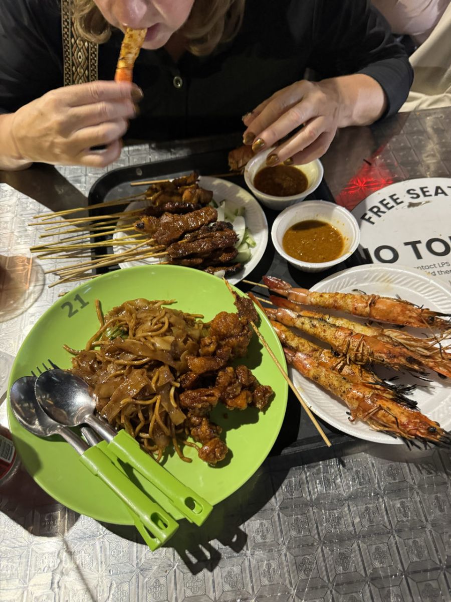 Boat Quay bruist dag en nacht. Vanaf hier wandelen we richting de Satay club die te vinden is bij Lau Pat San. Wat een geweldige ervaring. 's Avonds wordt de straat afgesloten, verschijnen er lange rijen tafels en komen de barbecues te voorschijn. De geur van gegrild vlees en vis hangt overal. Voor nog geen €10 geniet je hier van de heerlijke satespiesjes. Binnen in de food court kun je daarnaast allerlei Aziatische gerechten bestellen. Een ervaring die je absoluut niet mag missen!