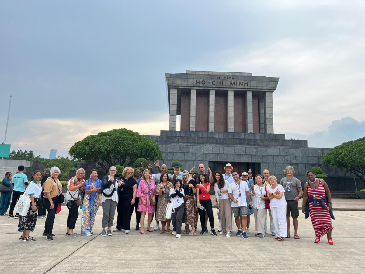 Na een paar mooie dagen in Singapore, vliegen we binnen ongeveer 2,5 uur naar Hanoi! Onze studiereis door Vietnam gaat beginnen. Na aankomst op de luchthaven worden opgehaald door onze lokale agent die ons naar het hotel in Hanoi brengt. We maken kennis met de groep en gaan lopend naar het restaurant. Wat een belevenis, overal scooters, fietsers, auto's en op elke hoek van de straat kun je wel wat eten.